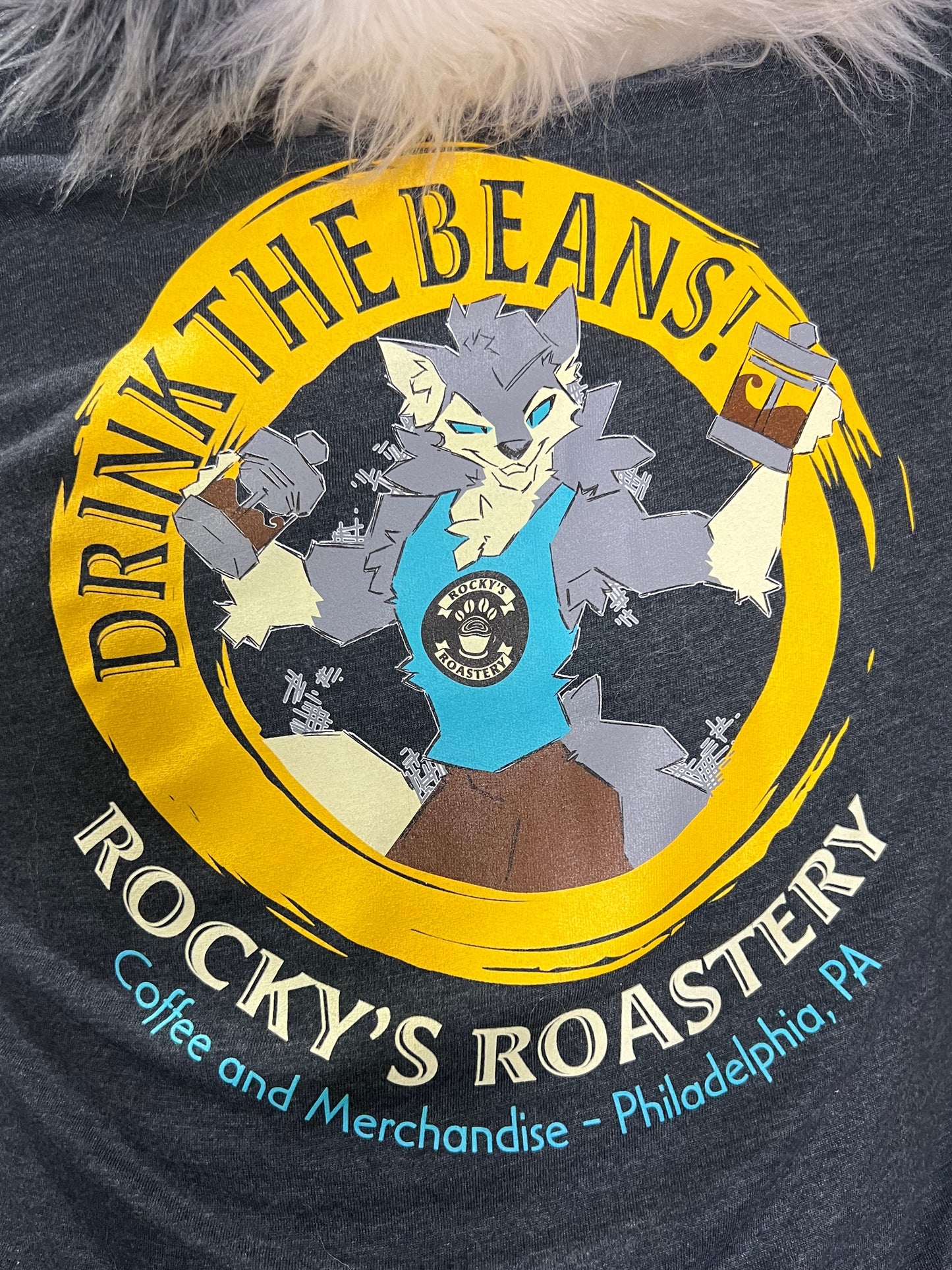 Look, we love running around shirtless just as much as the next person. But for those formal occasions that call for a shirt, look no further than the Rocky's Roastery "Drink the Beans!" tee, available in both dark and light gray. This light and soft shirt will keep you comfortable while also proudly displaying your love for bean juice and fluffy wolfman baristas. Warning: do not lend to friends and family, you'll never get it back.